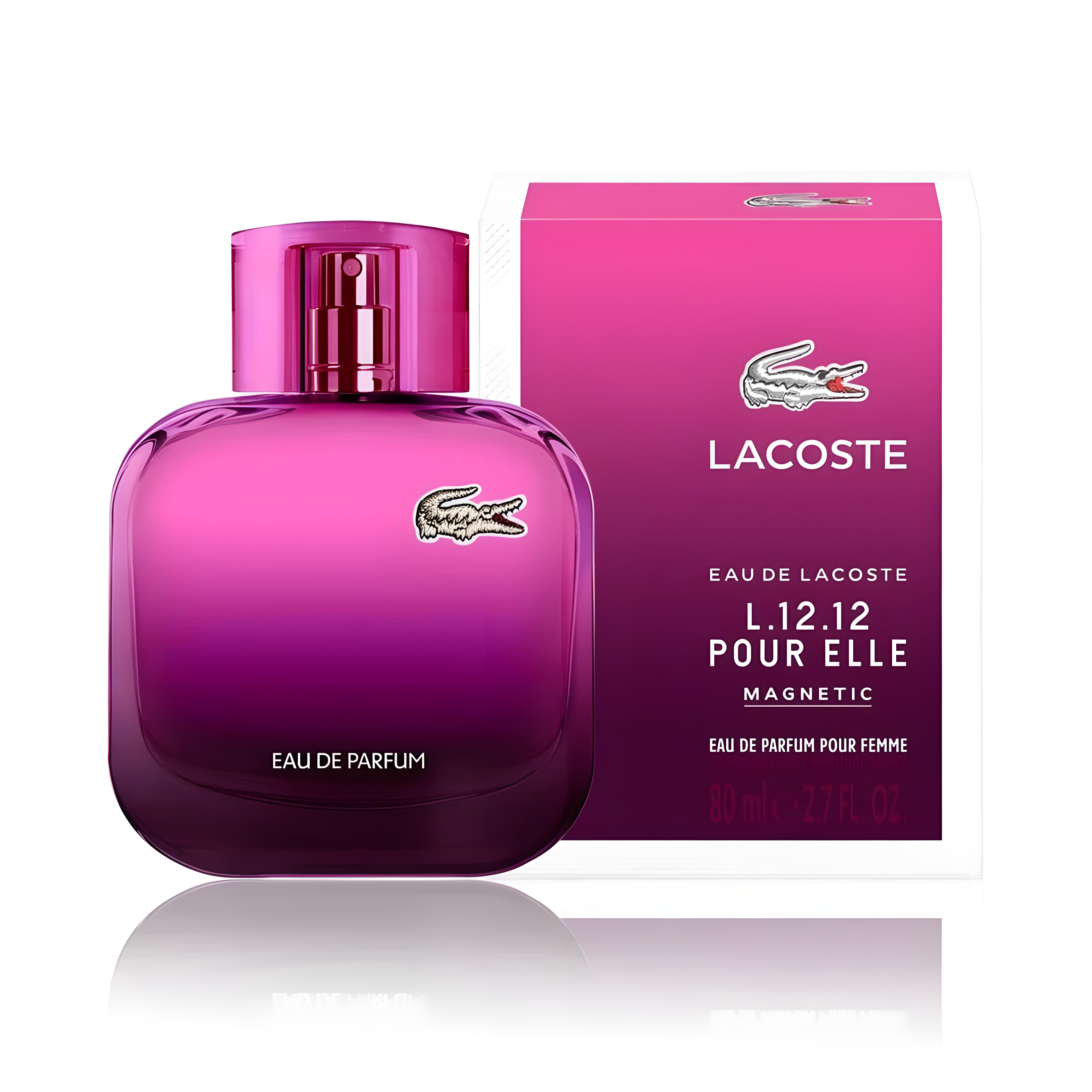 Launched in 2016, Lacoste L.12.12 Magnetic Eau de Parfum for Women is a sophisticated and enchanting fragrance. It opens with vibrant top notes of sweet mango, juicy clementine, and refreshing orange, creating an immediate tropical allure. The heart of the fragrance blooms with an elegant bouquet of heliotrope, jasmine, rose, and violet leaf, adding a romantic and floral essence. As the scent settles, the base notes of patchouli and rich vanilla provide a warm and irresistible foundation, making it perfect for both day and evening wear.